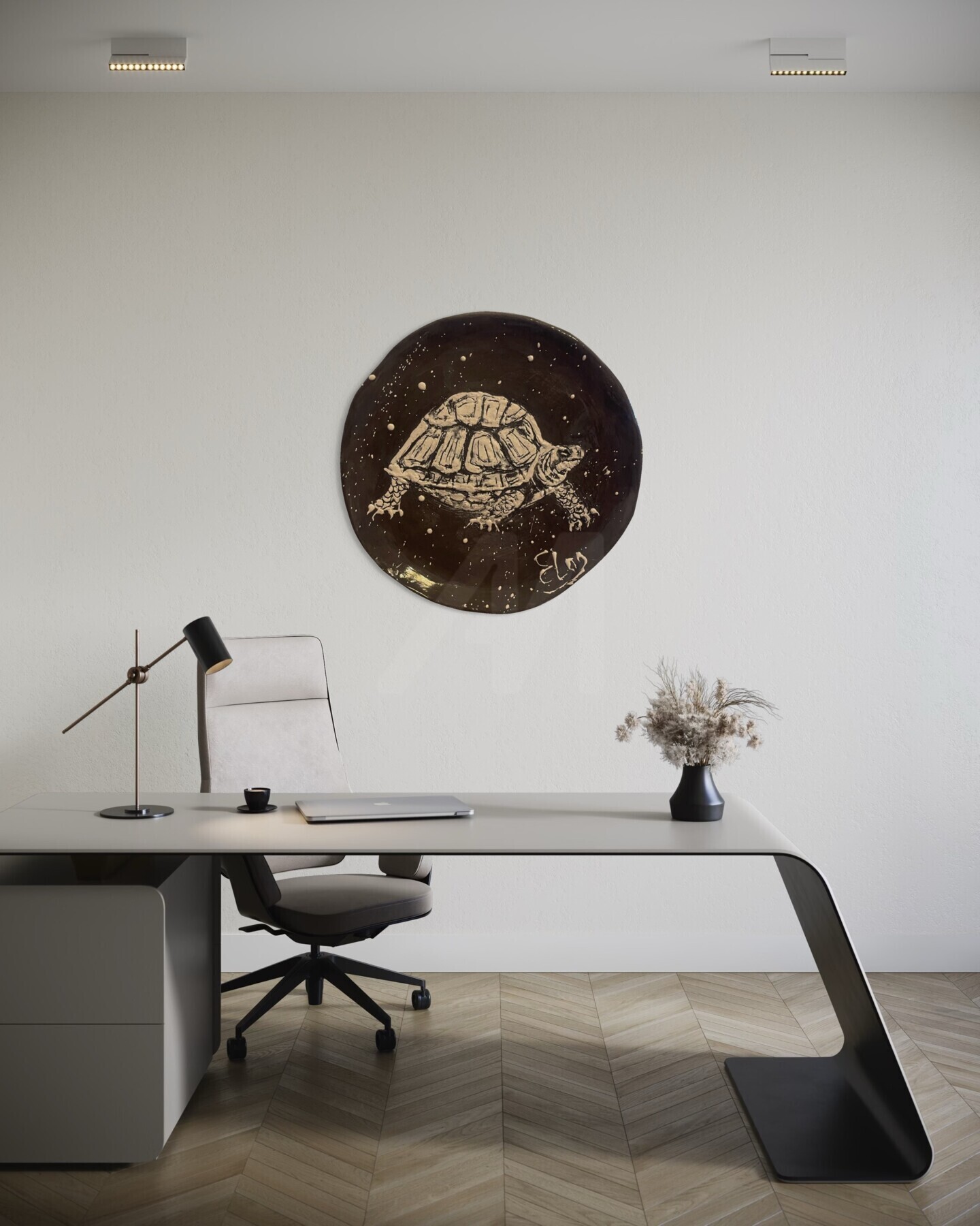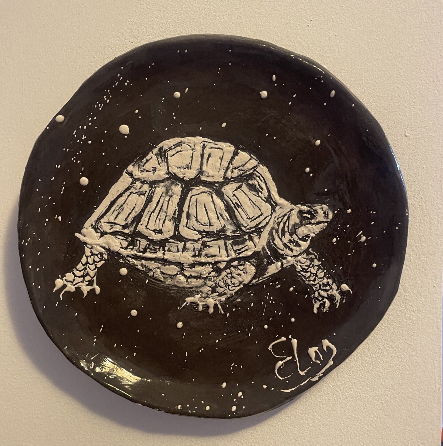 I created this ceramic piece to capture the quiet resilience of the sea turtle, rendered with minimalist lines against a dark, starry background. Its simplicity invites calm and reflection, bringing a serene, grounding energy to any space. I wanted to remind viewers of strength in stillness and the beauty found in life's gentle rhythms.